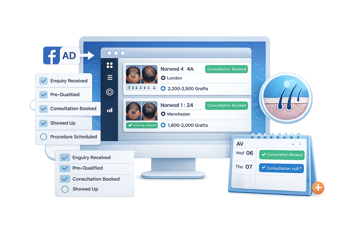 We help FUE & FUT clinics generate qualified enquiries from patients actively researching treatment - and turn them into confirmed consultations that show up.